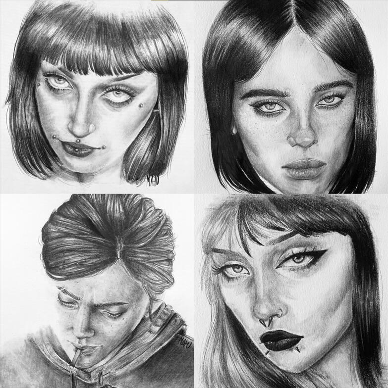 ✦sketch done on paper with different kinds of graphite pencil.Headshot - 5€
